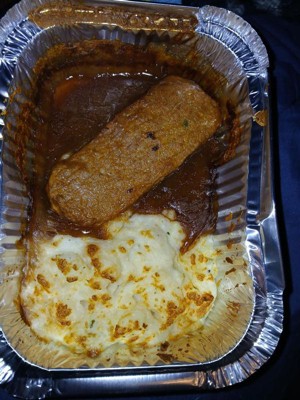 [This review was collected as part of a promotion.] This has no vegetables the portion was a good size the potatoes was good and the meatloaf was nasty didn’t look like meatloaf and left a bad taste in your mouth