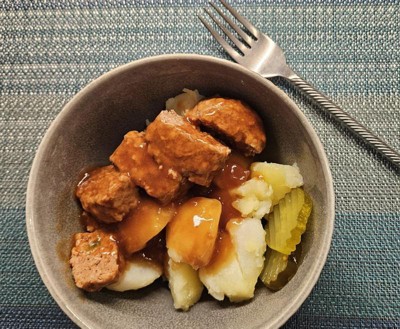 [This review was collected as part of a promotion.] Delicious! A “go-to” dinner for my family of 4! Easy to prepare, tasty and seasoned to perfection. The gravy was not too thick and was a great topping for the meatloaf and mashed potatoes.