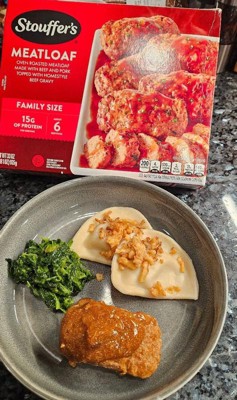 [This review was collected as part of a promotion.] Stouffer's meatloaf family size has easy heating instructions - i heated in the microwave - and looks appetizing once heated. I love the generous amount of delicious gravy and also the number of loaves of which each can be compared to the size of a thick slice of homemade meatloaf. The meat is very tasty and had a firm not mushy texture. Great for a family or for having leftovers for a few more meals! I will definitely buy this again and can really recommend. Two thumbs up!