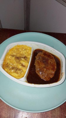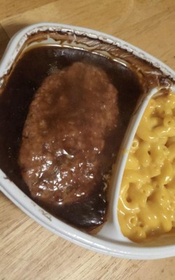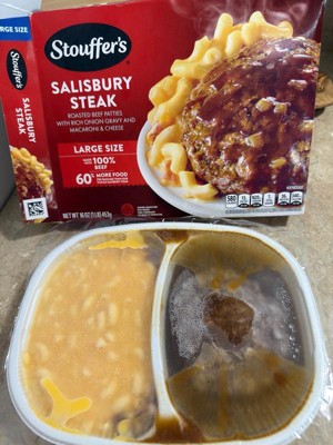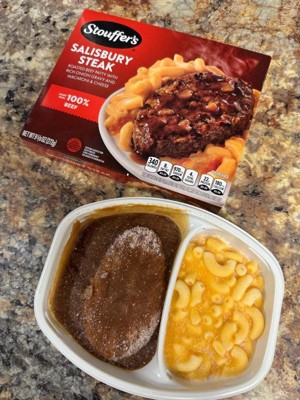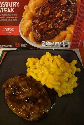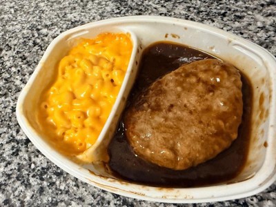 [This review was collected as part of a promotion.] Pretty good for a frozen meal, savoury gravy, tender Salisbury steak, and the mac and cheese is creamy. It was very quick and easy to make and very filling.