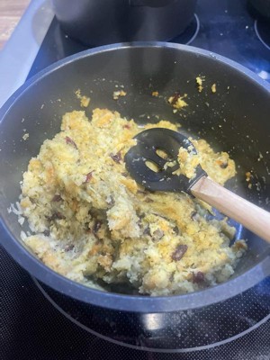 [This review was collected as part of a promotion.] The cranberry edition of stuffing was good, it honestly wasn’t my favorite but only because I don’t love cranberries anyway. However that doesn’t take away from the easy to make and it still has a delicious flavor. Easy to store in a Tupperware container and reheat.