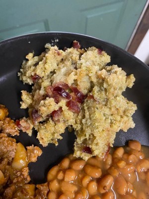 [This review was collected as part of a promotion.] I was a little hesitant about the cranberries but it was actually delightful! It added a slight change to the regular stuffing but it was a pleasant one! It was easy to make and enough servings to feed my family of 5