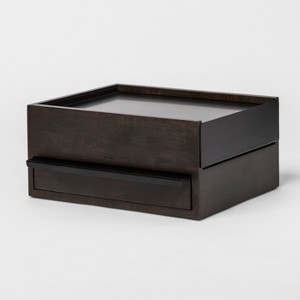 - CLEAN MODERN DESIGN: Designed by Sung Wook Park for Umbra, Stowit combines the organizational features of a classic jewelry box, with a clean modern design that looks great; made of wood and metal, it’s the perfect blend of style and functionality