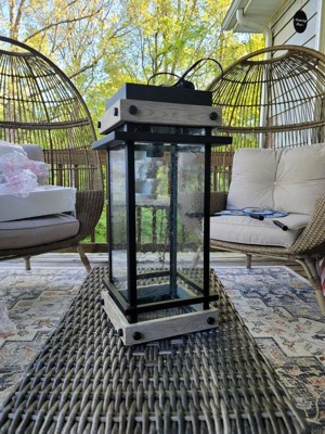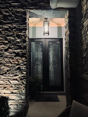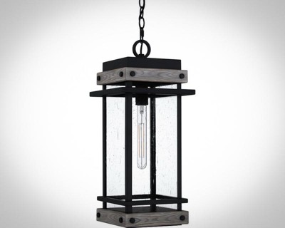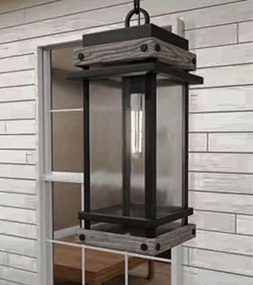 [This review was collected as part of a promotion.] I was gifted this item for free from #influencer in exchange for my honest review . This outdoor hanging lantern light provides a stunning farmhouse style vision. A matte black frame with wood like accents and slightly textured glass to provide that old work charm. It comes with a suspension chain that is long enough to adapt to a tall entryway or it can be easily manipulated to go as short as needed. I would recommend that your ceiling be 10 foot or higher if placing in front of a doorway. It used one bulb and was super easy to install with plenty of wiring. Very well crafted The mounting plate is a good size as well which allows to cover up the area from your previous installation with no additional paint touch-up. I also feel that this hanging lantern could easily be placed on a table with a battery operated candle for a nice decorative setting or a light source on a garden path. This lantern is eye catching and can be used in various applications, not just a hanging lantern.