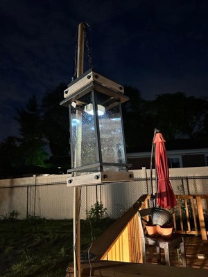 [This review was collected as part of a promotion.] I love this lamp is really easy to installs the design is beautiful the material is really resistant and durable is beautiful for put in you yard you can put any light for make more bright I love i recommend this for my family
