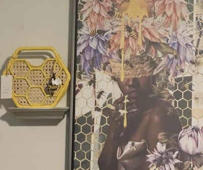This purse is cute, we love a quirky spring moment. It's a little overpriced, but everything is lately. The purse is sturdy the material is not scratchy and it's well put together. I feel super springy when I use it. The little bee came in curled, but flattened out when we went with the purse outside.