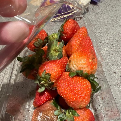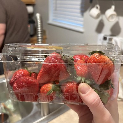 I got moldy strawberries. And seems like the container is pretty empty. Not very pleased