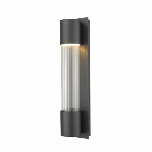 Complement sleek, modern style with this medium wall sconce in silver. A clear optic glass cylinder draws attention and creates a compelling silhouette, while delivering lovely lighting. Color Temperature: 2700K Lumens: 543 CRI: 90 Outdoor Living Shade Included: Yes Dimmable: Yes Material: Glass, Finish Color: Black, Width: 5", Height: 21", Length: 4.75", Depth: 4.75", Backplate Width: 21", Backplate Length: 5", Lamping Type: LED, Number Of Bulbs: 1, Wattage: 14 Watts, Cri: 90, Color Temperature: 2700 Kelvin, Lumens: 397, Dimmable: Yes, Moisture Rating: Wet Rated