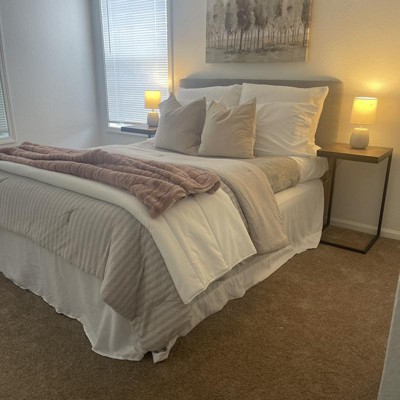 This comforter has received positive feedback for its softness, warmth, and aesthetic appeal, making it a great choice for various seasons. Guests appreciate its lightweight yet cozy feel, as well as its easy maintenance through machine washing. The reversible design adds versatility, allowing for different looks. However, some guests have noted issues with the material causing itchiness and the color not matching expectations. Overall, it is a well-rounded comforter that many guests love.