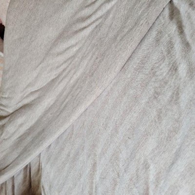 My favorite comforter, even compared to my more expensive ones. The filling is not thick at all & the fabric is breathable and light! It's so soft and perfect for the warmer months. Jersey is a dream to sleep under if you love soft bedding! My only complaint is the stitching had some loose threads - didn't affect the quality though, and easy enough for me to fix. It's also more of a warm taupe grey as opposed to a cool or neutral gray. Unbeatable at this price!