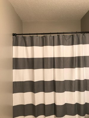 Stripe Shower Curtain is made from 100% cotton, with chic horizontal lines in grey and white is the best way to add stylishness to your bath. Its buttonhole top makes it easy for easy hanging. Curtain is washable and resilient for years of enjoyment adding simplicity to your bathroom decor . STANDARD 100 by OEKO-TEX certified.