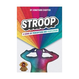 The thinkiest filler you'll every play, Stroop will ENFLAME YOUR BRAIN! Race to empty your deck before your opponents! Be prepared for your brain to bend in all sorts of ways, especially when the second round turns the rules on their head. It’s a mind game where your own mind works against you.Stroop is a real-time observation game based on the psychological Stroop Effect, which is a phenomenon caused by different functions of the brain interfering with one another.The cards in Stroop each display a single word. The words are printed in several colors (black, red, blue, and yellow), sizes (big and little), styles (hollow and solid) and have different numbers of letters (three, four, five, and six). The challenge is to read one word and quickly match it with the description of another word—without regard to what the second word says.