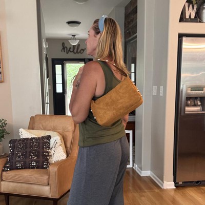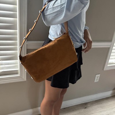 [This review was collected as part of a promotion.] I love the Universal Thread Brown Studded Shoulder Bag! It is the perfect size and so adorable! I love the single strap that is studded making it look stylish against the brown suede. The strap is short which makes it comfortable on your shoulder and easy to carry in the hand as well. It holds a lot in the main compartment and there are interior pockets for things like keys or lipstick also. I received an incentive to write this review.