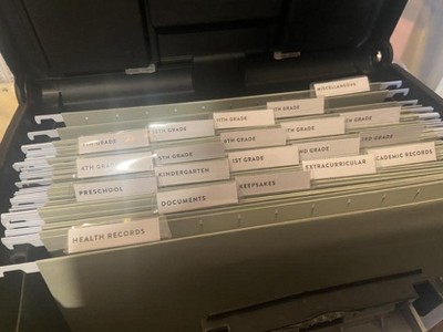 Love the idea but poor quality. The labels do t stay in place so I had to use double sided tape. The folders are nice but the metal hanging piece doesn’t fit our file box.