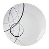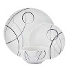 An abstract collage of overlapping circles swirls across each piece in this alluring Porcelain Dinnerware Set from Studio Nova®. Made of porcelain, the 12-piece set includes four 10.5-in. dinner plates, four 7.5-in. salad plates, and four 5.5-in. all-purpose bowls with 16-oz. capacity. They are ideal for everyday dining and light entertaining. Plates are dishwasher safe for fast, simple cleanup, and microwave safe for quick reheating.