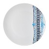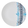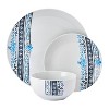 The Michele Dinnerware Set from Studio Nova® enlivens your tabletop with an abstract collage of overlapping designs in a band of vibrant blue tones. Made of durable crisp white porcelain, the 12-piece set includes four 10.5-in. dinner plates, four 7.5-in. salad plates, and four 5.5-in. all-purpose bowls with 16-oz. capacity. A modern and whimsical addition to your dining table, this collection is ideal for everyday dining and light entertaining. Plates are dishwasher safe for fast, simple cleanup, and microwave safe for quick reheating.