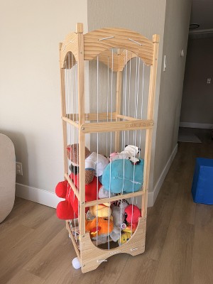 Stuffed Animal Storage Organizer with 360° Wheels, Large Wooden Plush Toy Holder, Kids Teddy Bear Zoo Cage for Playroom & Toddler Bedroom
