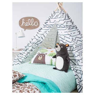 A miniature and more friendly version of the real thing, the Bear Throw Pillow from Pillowfort™ is a fun accent in any kid's room. Small limbs jut out from its comically round body, which has a soft furry texture. This small stuffed animal will be welcome at every tea party and in every blanket fort, as kids will delight in this plush bear pillow.