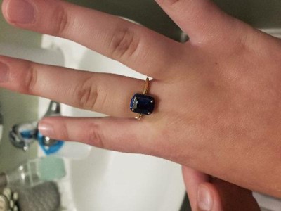 Stunning 14k Yellow Gold Plated Ring with Sapphire Cubic Zirconia and Blue Enamel Radiant Halo for a Vibrant and Elegant Statement Piece - 2 of 3Stunning 14k Yellow Gold Plated Ring with Sapphire Cubic Zirconia and Blue Enamel Radiant Halo for a Vibrant and Elegant Statement Piece - 3 of 3