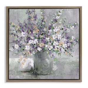Stupell Industries Blossoming Aster Flower Bouquet Floating Frame Canvas Art, Brown, 18" x 18"