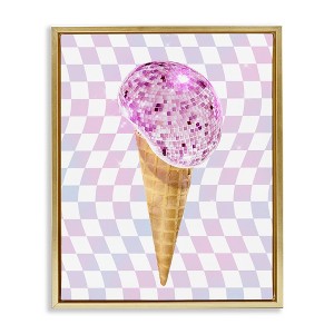 Stupell Industries Checkered Disco Ice Cream Floating Frame Canvas Art, Gold, 17" x 21"