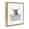 Stupell Industries Longhorn Highland Cow Bath Tub Floating Frame Canvas Art, Gold, 25" x 25"