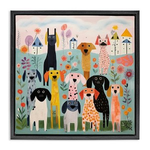 Stupell Industries Patterned Dogs in Yard Floating Frame Canvas Art