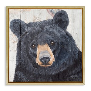 Stupell Industries Rustic Black Bear Floating Frame Canvas Art, Gold, 18" x 18"