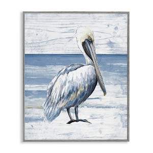 Stupell Industries Rustic Plank Pattern Pelican Framed Giclee Art