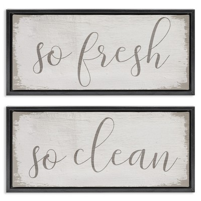 Stupell Industries Rustic White So Fresh So Clean 2pc Floating Frame Art Set, Gold, 31" x 14"