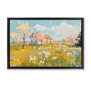Stupell Industries Spring Barn Scene Floating Frame Canvas Art, Black, 25" x 17"