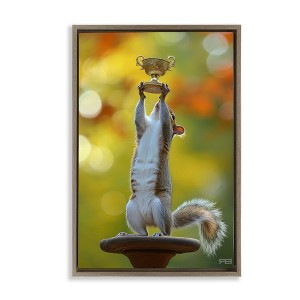 Stupell Industries Squirrel Holding Trophy Floating Frame Canvas Art