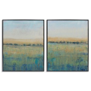 Stupell Industries Sunset Open Meadow Soft Green Floral Field 2pc Framed Giclee Art Set