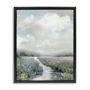 Stupell Industries Tranquil Flower Meadow Path Floating Frame Canvas Art, Black, 17" x 21"