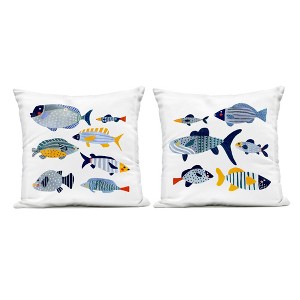 Stupell Industries Whimsical Varied Fish Patterns Kids Sea Life 2pc Outdoor Decorative Throw Pillow Set, 18 x 18 Each