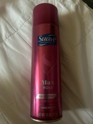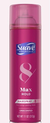 - Suave Max Hold Unscented Hairspray has a vitamin and protein-enriched formula