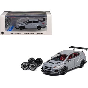 Subaru VAB WRX STI S4 Gray with Red Interior with Extra Wheels 1/64 Diecast Model Car by CM Models