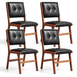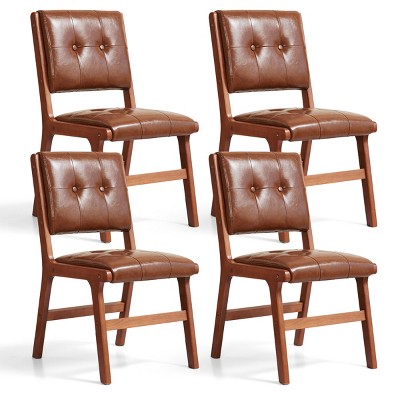 Subrtex Set Of 4 Modern Farmhouse PU Leather Dining Chairs With Wood Legs