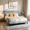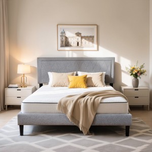 - 【Robot-Vacuum Friendly Storage】: The platform bed frame with elevated wood platform base offers clearance for storage bins and vacuum access. The fabric-wrapped headboard avoids hard edges, making it safer