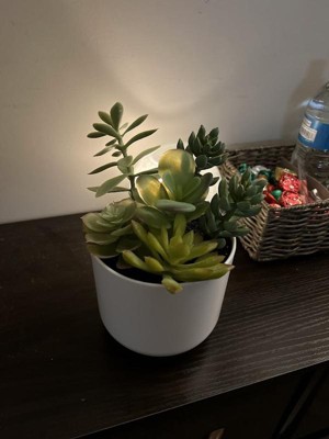 Add a splash of beauty to your space with this Succulent Arrangement in Pot from Room Essentials™. This artificial decor features realistic-looking succulents arranged together, and it comes housed in a white melamine pot with faux soil filler for instant display. Place it on a side or console table with other real or faux plants to create a relaxing indoor garden.