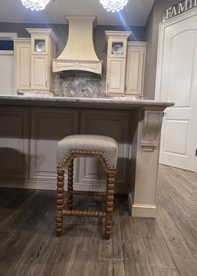 Bring an elegant farmhouse touch to your home with the Madison Park Sugar Counter Stool. This square counter stool is upholstered in beautiful fabric that features a bronze nail head trim for a rich accent. The solid wood turned legs and footrest displays a reclaimed wood finish to create a stunning transitional look. Accent your dining decor with this counter stool to complement your space with an elegant farmhouse allure. Assembly is required.