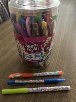 Sugar Rush 48pk Assorted Set Pens Multicolored is a great set. My daughter loves them. It a great variety of pens, pencils and markers. They really do smell like fruit, which is very pleasent. The set also makes a nice gift.