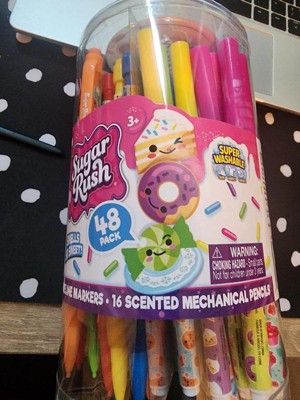Sugar Rush scented pencils and pens are an absolute hit with my kids—they love them! The sweet, fruity scents make homework time more fun, and they even enjoy taking the pencils to school. The fragrance isn't overpowering but it does linger on your hands for a bit. The pens are like a gel pen, great for journaling. The markers are fun for my toddler to color! Some of them smell better than others! Overall, the pencils are a delightful addition to any pencil case! The pens and markers are awesome too!