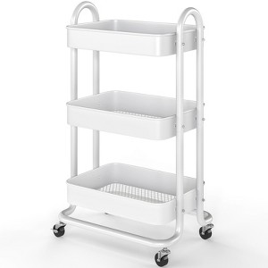 SUGIFT Rolling Bar Cart with Removable Top Tray, 3-Tier Metal Kitchen Serving Cart with Lockable Wheels