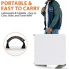 It fits in my car when I need to take it somewhere. It's still pretty heavy, but I can manage it by myself. It stores easily when not in use and can ride on a hand truck.