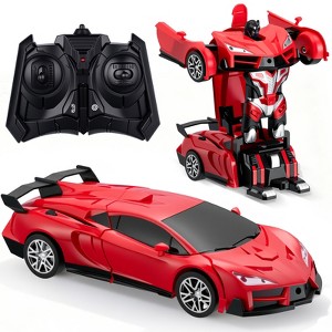 SUGIFT Remote Control Transforming Car Robot – 1:18 RC Deform Vehicle with 360° Rotation, LED Lights, Kids Toy