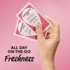 I'm obsessed with smelling good and personal hygiene. This includes making sure all my "pink parts" are on point. Since I'm susceptible to BV infections, I was cautious about trying these. Thankfully, they work AWESOME and smell AMAZING. Better yet, each wipe is a good size (comparable to a diaper wipe). Since I buy the individually wrapped ones, I have them in every bathroom
