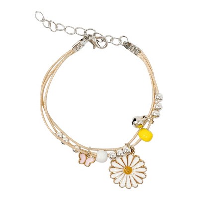 The sunflower charm is beautifully detailed, with intricate petals and a delicate center, giving the bracelet a natural and organic feel. The bright yellow color of the sunflowers is cheerful and uplifting, making this bracelet a perfect accessory for the summer months or to brighten up any outfit.