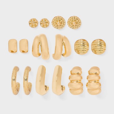 Smooth and Textured Ribbed Earring 8pc Set - A New Day™ Gold