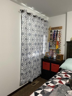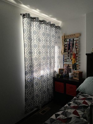 [This review was collected as part of a promotion.] The Sun Zero Eldon Grommet Curtain panels in grey go perfect in our game room. I love how the grommets are built in and ready to hang. The geometric trellis pattern was the added touch we needed on our French doors. They do a great job of keeping the sun out and help to keep the room dark. The curtains are very well made and would go well with so many things.